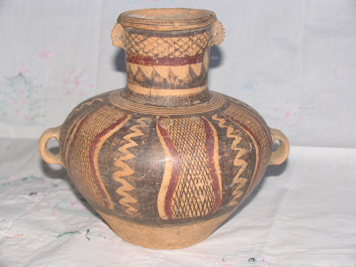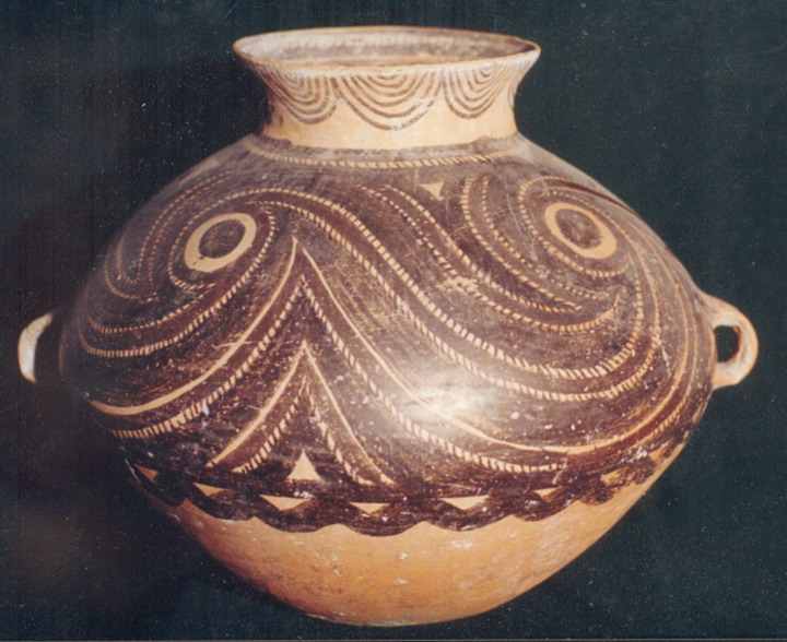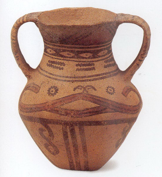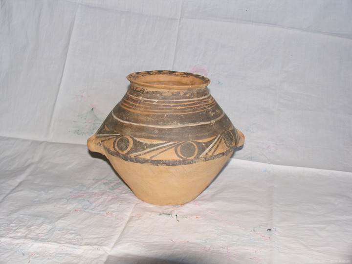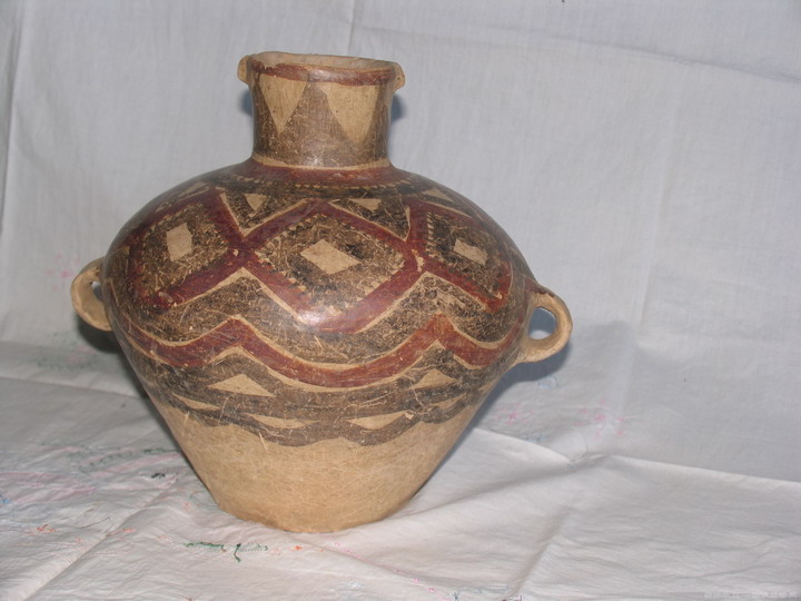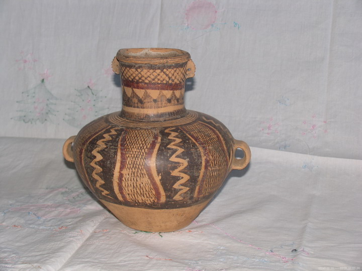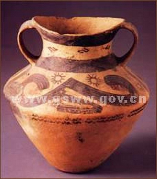 20世纪20年代的一天,瑞典学者安特生在甘肃临洮马家窑村的黄土坪上发现了大量的彩陶。绚丽的光彩,奇美的造型,竟然把这位考古工作者惊呆了!当他抚摸着这一件件惊世的彩陶时,竟激动地高呼:“马家窑文化!马家窑文化!”从此,“马家窑文化”的名字便作为一个灼灼生辉的学术名称不胫而走,传遍海内外。 马家窑的彩陶雕塑、绘画、烧制等各种技艺于一体,第一次将远古人类的审美观念完整、系统地表达了出来,反映了远古人类高度综合的知觉能力和强烈的审美愿望。集物质实用性和精神象征于一体的彩陶,其造型与纹饰,有什么深刻的内涵呢?用文化的视角来观照,主要有原始宗教、图腾崇拜、族类标识等精神方面的含义。 彩陶文化是综合反映数千年原始社会状况、人的生存情境和精神世界的一本独特“史书”,是诠释人类生命、浩淼宇宙、人与自然的“史诗”。 新中国成立前后,随着文物考古与普查工作的开展,在临洮境内发现马家窑类型、半山类型、马厂类型、齐家类型、辛店类型、寺洼类型等各类遗址167处,其中新石器时代和青铜时代的遗址104处,说明临洮是中华文明的重要发祥地之一。 马家窑彩陶器形丰富多样,典型的有敛口碗、曲腹盆、长颈瓶、小口长颈尖底瓶、小口长颈深腹壶、小口瓮、钵、带嘴锅等。其中尤以侈口长颈双耳彩陶壶、敛口小平底彩陶钵、卷唇曲腹彩陶盆、短唇圆肩彩陶罐、小口长颈瓶、短柄豆等最具特征。尖口瓶多为平口或侈口尖瓶;碗、钵、盆一类器物腹部较浅,腹部曲线呈圆弧形。外形比例均衡,棱角分明,线条流畅,细泥红陶质地坚硬,外表光滑,底色呈橙黄或米黄,不见鼎一类的三足器,也不见陶炊和圆底釜。