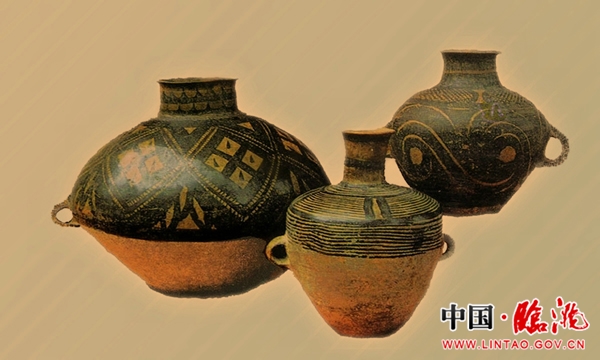 马家窑的彩陶雕塑、绘画、烧制等各种技艺于一体,第一次将远古人类的审美观念完整、系统地表达了出来,反映了远古人类高度综合的知觉能力和强烈的审美愿望。 集物质实用性和精神象征于一体的彩陶,其造型与纹饰,有什么深刻的内涵呢?用文化的视角来观照,主要有原始宗教、图腾崇拜、族类标识等精神方面的含义。 彩陶文化是综合反映数千年原始社会状况、人的生存情境和精神世界的一本独特“史书”,是诠释人类生命、浩淼宇宙、人与自然的“史诗”。 新中国成立前后,随着文物考古与普查工作的开展,在临洮境内发现马家窑类型、半山类型、马厂类型、齐家类型、辛店类型、寺洼类型等各类遗址167处,其中新石器时代和青铜时代的遗址104处,说明临洮是中华文明的重要发祥地之一。 马家窑类型 马家窑彩陶器形丰富多样,典型的有敛口碗、曲腹盆、长颈瓶、小口长颈尖底瓶、小口长颈深腹壶、小口瓮、钵、带嘴锅等。其中尤以侈口长颈双耳彩陶壶、敛口小平底彩陶钵、卷唇曲腹彩陶盆、短唇圆肩彩陶罐、小口长颈瓶、短柄豆等最具特征。尖口瓶多为平口或侈口尖瓶;碗、钵、盆一类器物腹部较浅,腹部曲线呈圆弧形。外形比例均衡,棱角分明,线条流畅,细泥红陶质地坚硬,外表光滑,底色呈橙黄或米黄,不见鼎一类的三足器,也不见陶炊和圆底釜。 马家窑类型的彩陶图案常以密集的平行、弧曲、交叉、同心圆、涡漩的线条为主,表现出一种富有韵律的动感。图案布局多根据器形设计,窄长的瓶、壶图案多作横分层和散点式的排列,大型陶器的图案多层排列,而小型陶器往往通体绘满花纹。 我们从“漩纹尖底瓶”上所绘多重的平行线条和四方连续旋纹饰中,可以感受到如涡漩飞转、水珠四溅的情景。“圆点网纹瓶”以变体叶纹、圆圈、弧线三角、网纹为饰,其颈部的平行线,腹部的水波纹和圆点纹,似乎象征着洮河的波流。 但是,马家窑类彩陶纹饰,仍然以几何纹为装饰主体,最具代表性的几何纹是旋纹,多以同心圆为中心组成图案,运用直线与曲线的组合,所以产生出一种强烈对比的艺术效果,几何纹饰善于利用曲折起伏的线条与旋转多变的构图,使整个画面产生一种飞扬流动的节奏感。 在马家窑类型的彩陶图案中,也有少量的动物纹,但多被神化了,有些是被人格化了的神灵,有些则是不同动物的某些部分的混合体,或者将动物躯体加以取舍和夸张。 总之,马家窑类型彩陶图案,最突出的特点是旋动,或来往反复,或盘旋回转,或交错勾连,流利生动,结构巧妙,在强烈的动感中给人以美的愉悦和享受。所以,马家窑类型彩陶是先民最富有艺术性的创造,是我国绘画史上现存的最古老的艺术品之一。这一朵朵绚丽璀璨的艺术之花,在人类文明的史册里永放异彩!在我国彩陶文化史上,马家窑文化彩陶造型优美,花纹绚丽多姿,色彩厚重浓烈,色调单纯明快,用笔飞动流畅,构图细密严谨,器形丰富多样,技巧精湛熟练,以独特的造型能力和表现手法在新石器时代中晚期的彩陶文化发展历程中具有里程碑意义,不仅意味着中国彩陶艺术发展的顶峰,同时也说明中国艺术在史前时代就已经取得了相当高的成就。 半山类型 马家窑文化发展到半山期,其造型和纹饰有了进一步的繁荣,具有鲜明的特色。半山类型彩陶器形主要有壶、罐、杯、钵等,以壶类为最多,其造型特点是直口、长颈、广肩。流行大型的小口高领,鼓腹双耳和侈口短颈鼓腹双耳瓮,部分彩陶的颈部上端有对称的鸡冠状盲耳。如果说马家窑类型的彩陶造型以独具特色的瓶为典范的话,那么,半山型的特征首先表现在壶和罐的造型上。壶和罐作为这一类型中最主要的器形,其最突出之处是鼓腹。器物腹部向外作最大弧度的膨圆,近似球形,并具有折肩、鼓腹、敛底等特征,通常显得矮胖、敦实。一般在球形体基础上加长颈为壶,短颈为罐、瓮等。这种浑圆、凝重、饱满的风格,构成了半山类彩陶器形独具的特色。 这种器形和与之相得益彰的纹饰,组成了半山类彩陶和谐融合的完美有机体。它的最大特色是:常用黑红两色相间的线条,勾画出各种各样的花纹图案。绘饰主要有螺旋纹、菱形纹、圆圈纹、葫芦纹、同心圆纹、折线三角纹、平列弧线纹、网纹、锯齿纹、贝纹等。其中数量最多的是锯齿状线条勾画出的四方连涡形纹,但旋心扩大,内饰各种精细的花纹,也有以饰有花纹的图案带来连接旋纹的旋心。这种花纹中套花纹的装饰手法,使图案显得繁茂绚丽。其次出现的还有葫芦网格纹、菱形花格纹、圆圈网格纹、连弧纹等。到了晚期,半山彩陶纹饰多绘以二方连续的四大圆圈纹,以及由此发展起来的四大圈纹,并常常在四大圈纹中饰以网格纹、棋盘格纹、菱格纹、斜锯齿带纹、小圆圈和点纹等,并在四大圈的外框和颈肩之交置以黑锯齿带和红线。 半山类型彩陶纹饰花纹精致,色彩富丽,严谨规整,表现手法繁复多样。绝大多数纹饰的构图,无论正视、侧视或俯视,都可构成优美的画面,并具有很强的装饰效果,丝毫不显呆滞笨拙。 马厂类型 马厂类型是在半山类型彩陶的基础上发展起来的,但在器形上,仍有自己的造型特色。根据其风格的变化,马厂彩陶可分为早、中、晚三期。 早期陶器以彩陶双耳罐、小粗陶双耳罐为主,双耳彩陶壶体形矮胖,短颈侈口,长颈彩陶壶多直口,某些要素和半山陶器颇类似。 中期彩陶数量