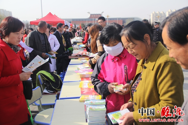 普法办的展位特别拥挤,普法书籍、宣传手册以及普法咨询都成了群众的“抢手货“。洮阳镇的马成福老人手捧着一叠资料从人群中挤了出来,兴奋地说:“今天免费赠送的这些书,够我好好看一阵。”