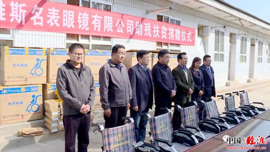 临洮讯(记者 董志斌)10月24日,县人大常委会主任蒋景林联系巍雅斯名表眼镜有限公司为中铺镇残疾群众捐赠了轮椅、拐杖等物品及补助金共计3万多元。