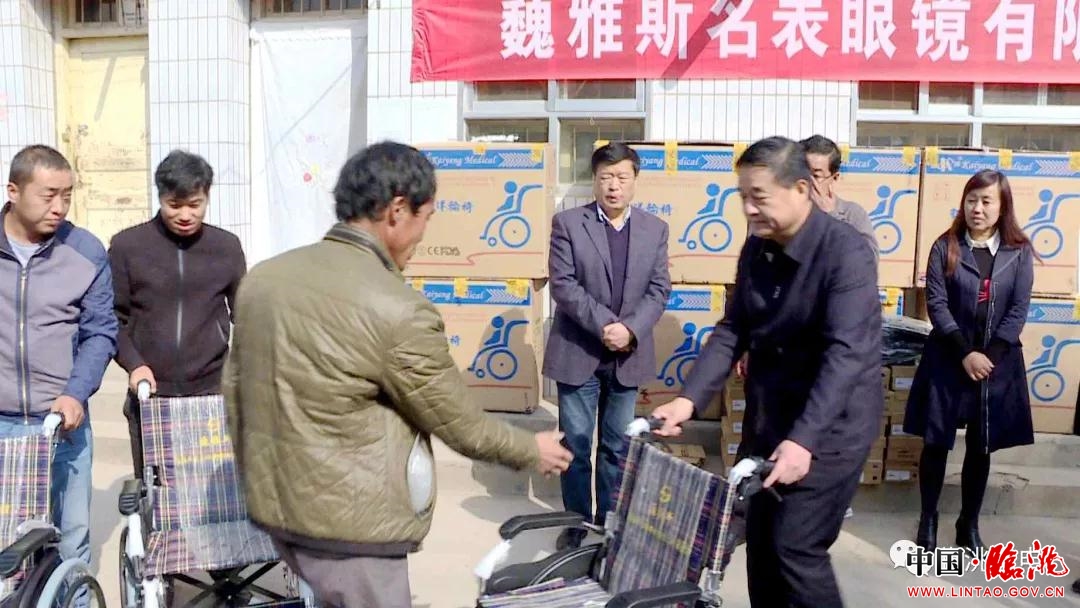仪式上,巍雅斯名表眼镜有限公司为残疾群众现场发放了轮椅、拐杖及补助金,同时,县残联还为残疾群众捐赠了运动鞋裤。(责编:杜向廉 审核:李小军)