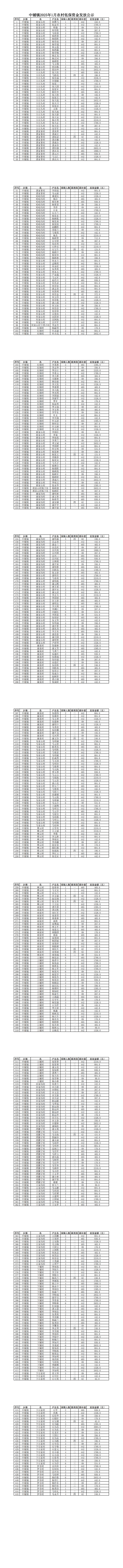 中铺镇2025年1月农村低保资金发放公示