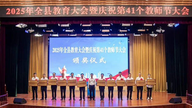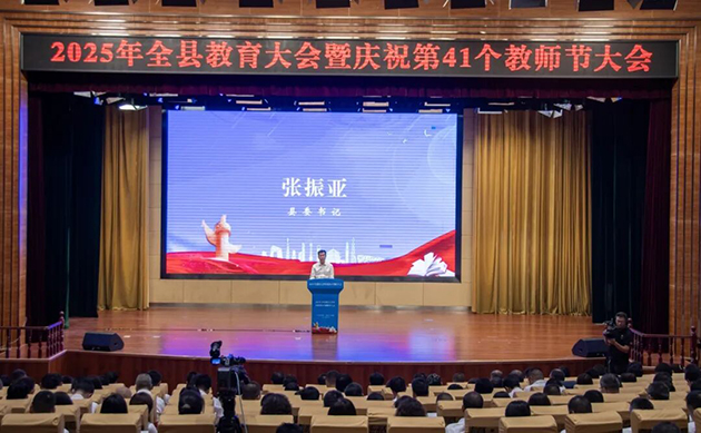 9月8日,2025年全县教育大会暨庆祝第41个教师节大会召开。会议深入学习贯彻习近平总书记关于教育的重要论述精神,全面回顾总结全县教育事业取得的成绩,安排部署下一阶段教育重点工作,动员全县上下锚定“教育强县”目标,乘势而上开新局、奋勇争先创辉煌。县委书记张振亚讲话,县委副书记、县长何小明主持会议,县领导陈维山、黎辉等参加。